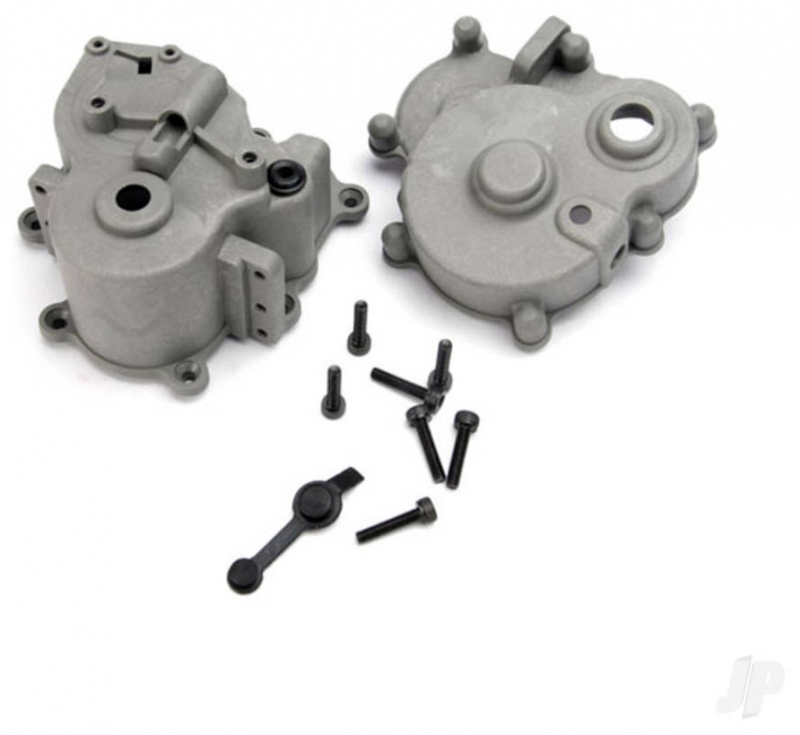 Traxxas Gearbox halves (Front & Rear) / rubber access plug / shift detent ball / spring / 4mm GS / shift shaft seal, Glued 020334518101