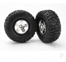Traxxas Tyre & wheel assembly, glued (SCT satin chrome, black beadlock style wheels, Kumho Tyres, foam inserts) (2) (2WD front) 020334588104