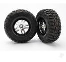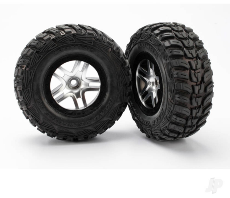 Traxxas Tyre & wheel assembly, glued (S1 compound) (SCT Split-Spoke satin chrome, black beadlock style wheels, Kumho Tyres, foam inserts) (2) (2WD front) 020334588289