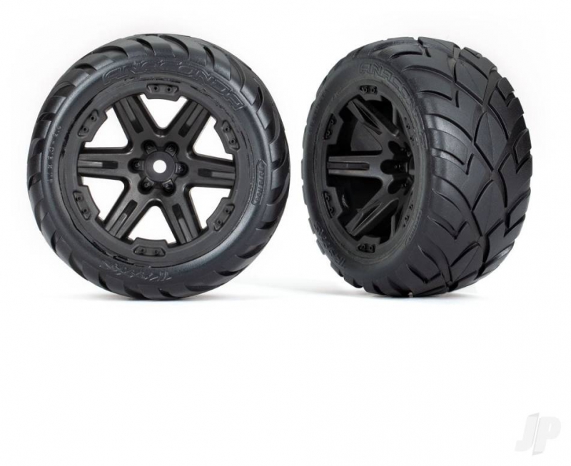 Traxxas Wheels & Tyres, Assembled, Glued (2.8in) (RXT Black wheels, Anaconda tyres, foam inserts) (4WD electric front/rear, 2WD electric front only) (2) (TSM rated) 020334677501