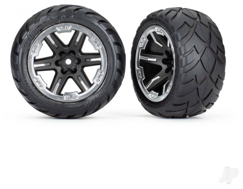 Traxxas Wheels & Tyres, Assembled, Glued (2.8in) (RXT Black & Chrome wheels, Anaconda tyres, foam inserts) (4WD electric front/rear, 2WD electric front only) (2) (TSM rated) 020334677594