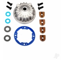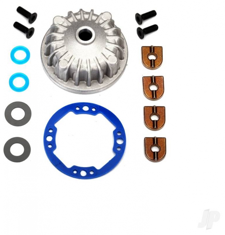 Traxxas Housing, centre Differential (Aluminium) / x-ring gaskets (2 pcs) / ring gear gasket / bushings (2 pcs) / 5x10x0.5mm PTFE-coated washers (2 pcs) / 2.5x8 CCS (4 pcs) 020334678102