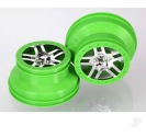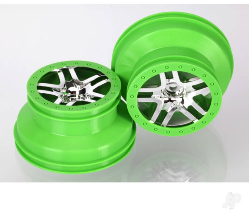 Traxxas Wheels, SCT Split-Spoke, chrome, green beadlock style, dual profile (2.2" outer 3.0" inner) (4WD front/rear, 2WD rear) (2) 020334687296