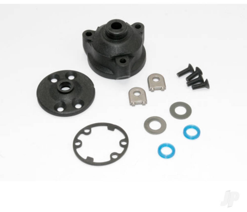 Traxxas Housing, centre Differential / x-ring gaskets (2 pcs) / ring gear gasket / bushings (2 pcs) / 5x10x0.5 TW (2 pcs) / CCS 2.5x8 (4 pcs) 020334688408