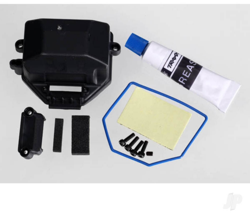 Traxxas Box, receiver (sealed) / wire cover / foam pads, upper & lower / silicone grease / 2.5x8 CS (4 pcs) / 3x4 GS (1pc) 020334702494