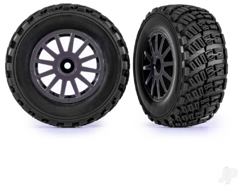 Traxxas Wheels & Tyres, assembled, glued (gray wheels, gravel pattern Tyres, foam inserts) (2) (TSM rated) 020334036049