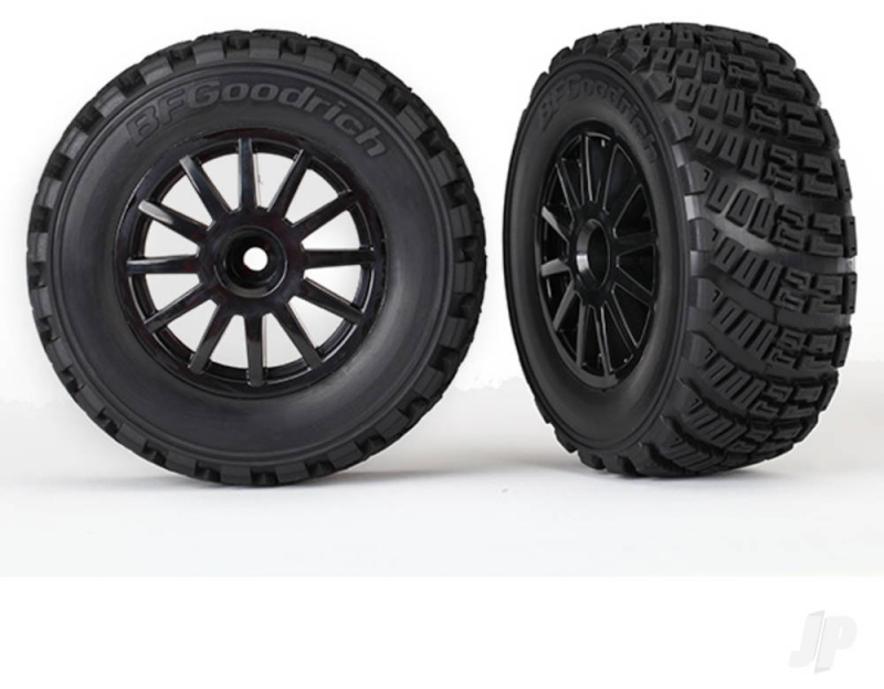 Traxxas Wheels & Tyres, assembled, glued (black wheels, gravel pattern Tyres, foam inserts) (2) (TSM rated) 020334747372