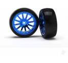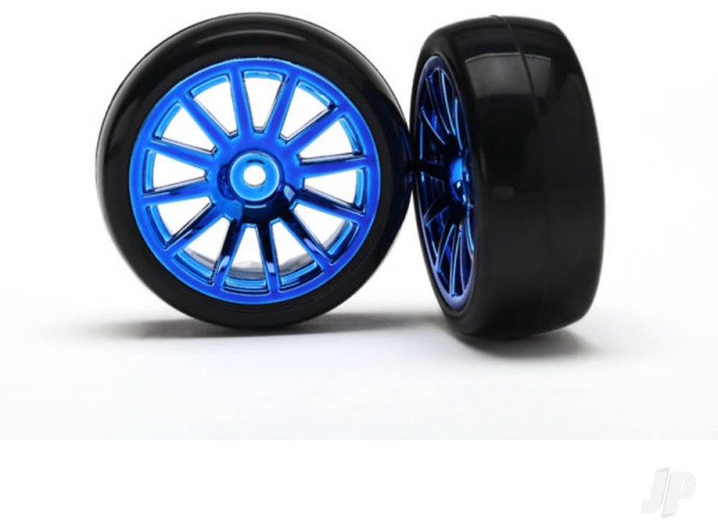 Traxxas Wheels & Tyres, assembled, glued (12-spoke Blue Chrome wheels, slick tyres) (2) 020334757388