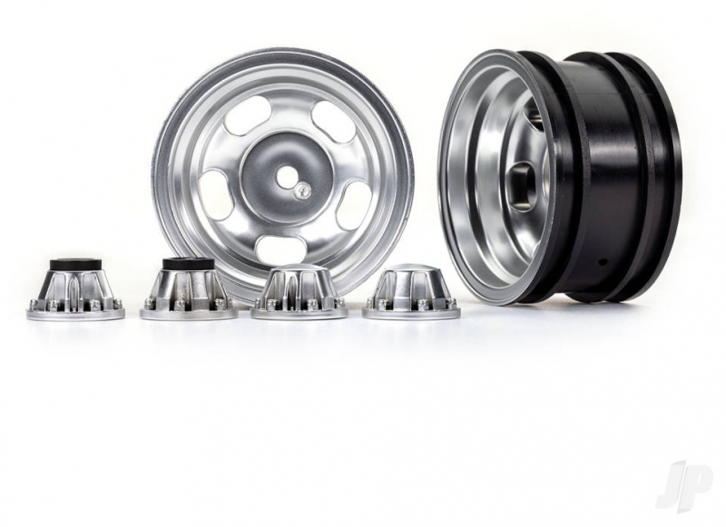 Traxxas Wheels, 2.2in, Satin Chrome (2) / centre caps (2) (requires #8255A extended thread stub axle) 020334815804