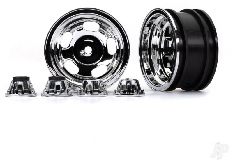 Traxxas Wheels, 2.2in, Chrome (2) / centre caps (2) (requires #8255A extended thread stub axle) 020334815897
