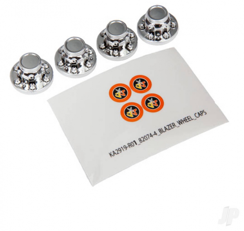 Traxxas Center caps, wheel (Chrome) (4 pcs) / decal sheet (requires #8255A extended stub axle) 020334816405