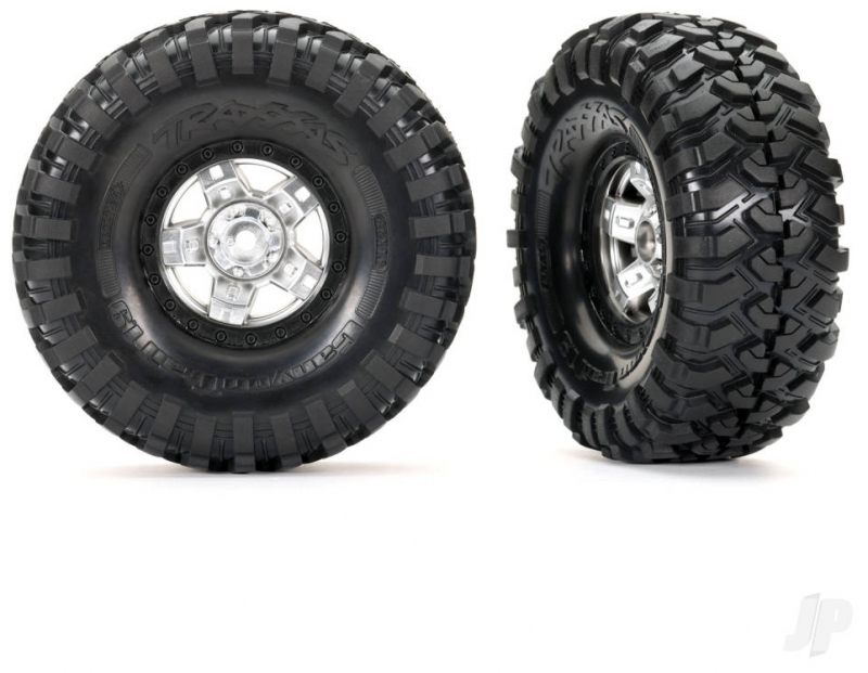Traxxas Wheels & Tyres, Assembled, Glued (TRX-4 Sport, Satin Chrome, Black beadlock 1.9in wheels, Canyon Trail 4.6x1.9in Tyres) (2) 020334817990