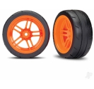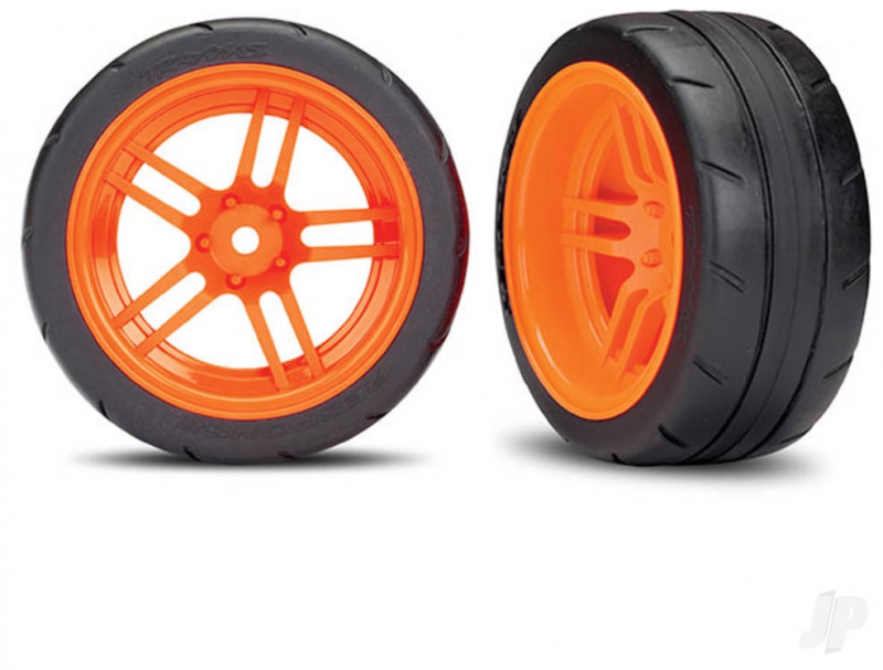 Traxxas Wheels & Tyres, assembled, glued (split-spoke orange wheels, 1.9" Response Tyres) VXL Rated (extra wide, rear) (2) 020334837455