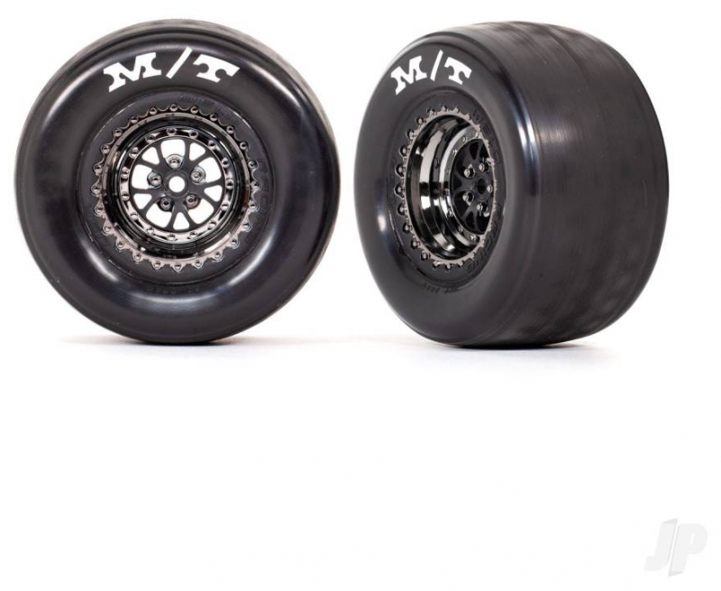 Traxxas Wheels & Tyres, Assembled, Glued (Weld Black Chrome wheels, tyres, foam inserts) (rear) (2 pcs) 020334947598