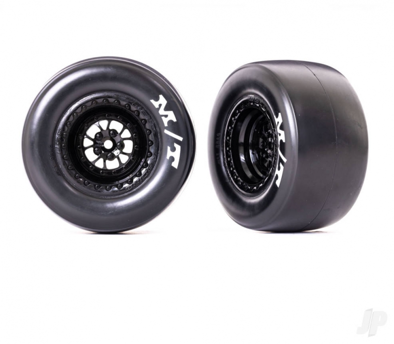 Traxxas Wheels & Tyres, Assembled, Glued (Weld Glossy Black wheels, Mickey Thompson Drag Slicks, sticky compound, foam inserts) (rear) (2 pcs) 020334947604