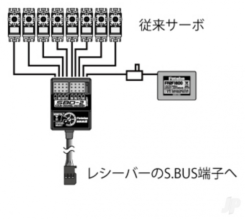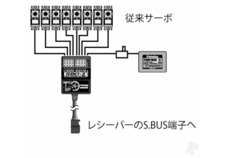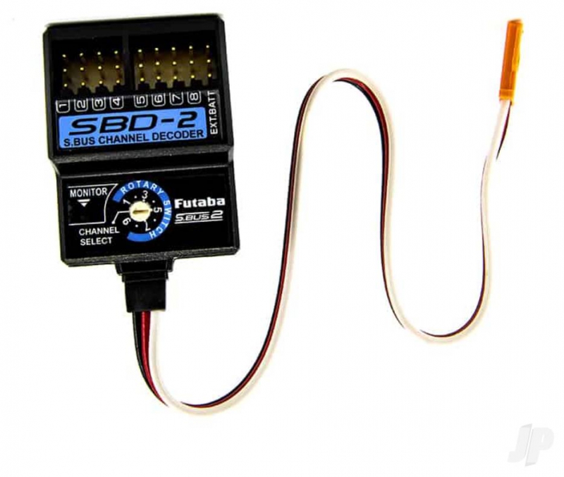 Futaba SBD-2 8-Channel S.BUS Servo Decoder FUT05102620-1 converts up to eight PWM servo signals into a single S.BUS or S.BUS2 digital output.
