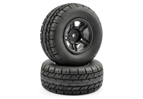 The pre-glued tyres come mounted on lightweight yet tough black plastic wheels, eliminating the hassle of tyre fitting and ensuring maximum convenience straight out of the box. Their 12mm hex fitment is widely compatible with many popular short course trucks, including the Traxxas Slash, HPI Blitz, and other 2WD/4WD models. The dual-diameter size (2.2" outer, 3.0" inner) replicates scale proportions while maintaining balanced handling and stable cornering.