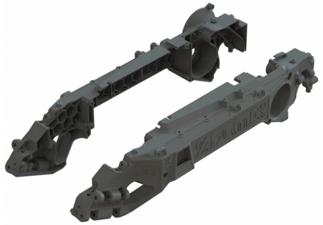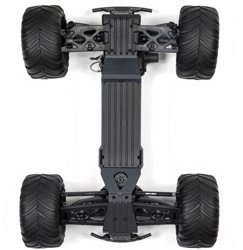The ARRMA GORGON C-ARA3230ST3 1/10 gun metal monster truck features a strong spine composite chassis that resists dirt, rocks, and mud buildup. This clean-running design keeps the truck lightweight and efficient, allowing more power to reach the wheels. The chassis is engineered for bash-it-all durability, absorbing impacts and maintaining structural integrity during aggressive driving. Combined with independent suspension and oil-filled coilover shocks, the chassis delivers a smooth ride over uneven terrain and supports adjustable ride height for increased ground clearance.