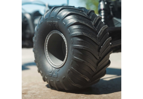The ARRMA 1/10 monster truck with dBoots Chevron tires and IC3 connector features a factory-installed transmission with metal gears and a mesh-safe plate for added durability. This drivetrain is brushless-ready and designed to handle future performance upgrades. Mounted on tough nylon wheels, the dBoots Chevron MT tyres provide deep tread and aggressive grip across dirt, gravel, and pavement. These tyres are made from high-quality rubber for long-lasting traction and resilience, ensuring the GORGON maintains control and speed in all conditions.