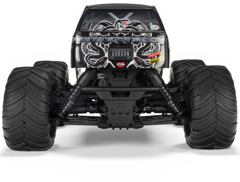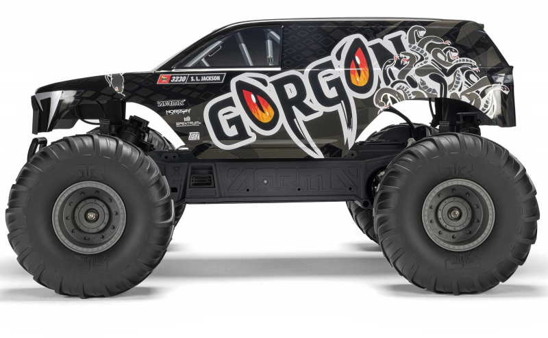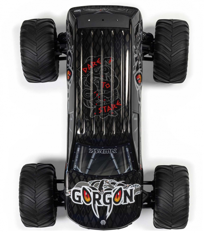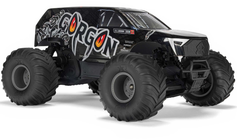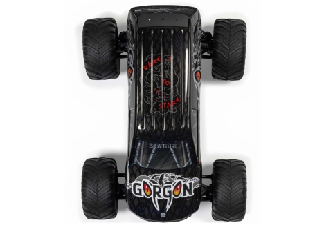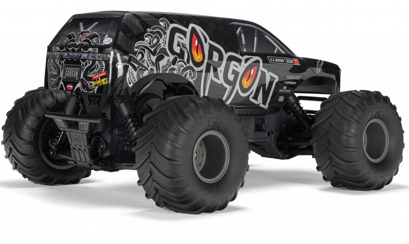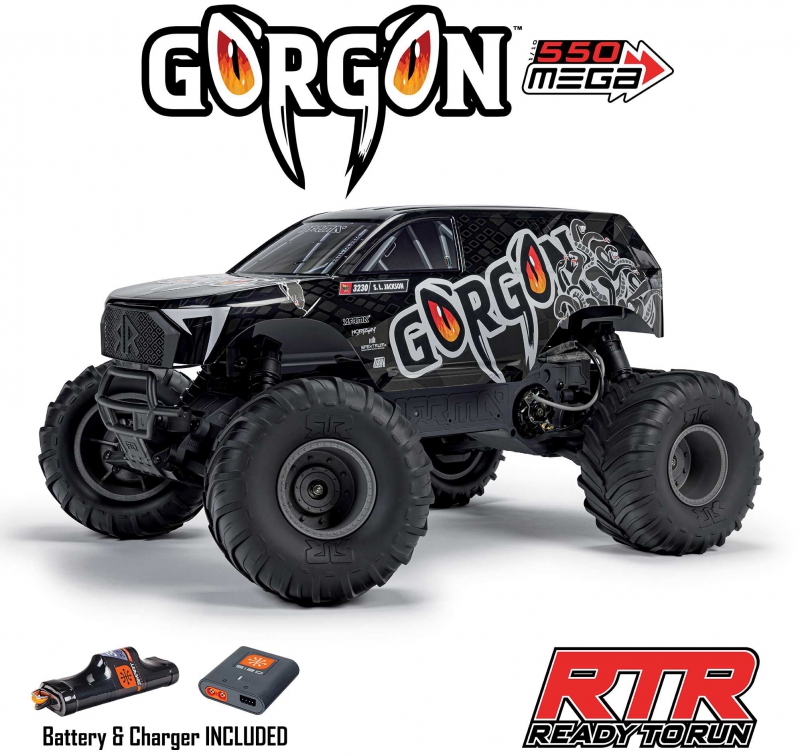 - Product Type: ARRMA GORGON C-ARA3230ST3 1/10 gun metal monster truck, ARRMA 2WD brushed RC truck with MEGA 550 motor, ARRMA RTR electric monster truck with Smart battery and charger, ARRMA GORGON RC truck with waterproof Spektrum electronics, ARRMA 1/10 monster truck with dBoots Chevron tires and IC3 connector, ARRMA beginner-friendly RC car with SLT2 radio and mesh-safe transmission