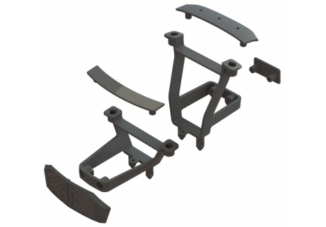 The composite spine chassis of the ARRMA 1/10 monster truck with dBoots Chevron tires and IC3 connector is engineered for strength and simplicity. Its spine-style structure resists dirt accumulation, keeping the truck lightweight and clean during use. The bottom-loading battery tray allows for quick battery changes without removing the body, streamlining maintenance. The independent suspension system and oil-filled coilover shocks absorb impacts and maintain ride comfort, even on uneven terrain. Adjustable ride height enables users to fine-tune ground clearance for different surfaces, making the chassis and suspension system ideal for off-road bashing.