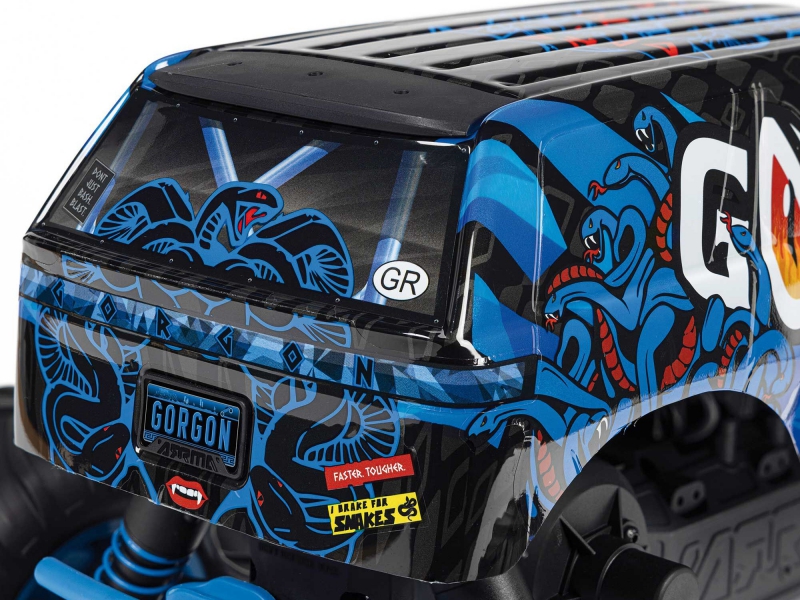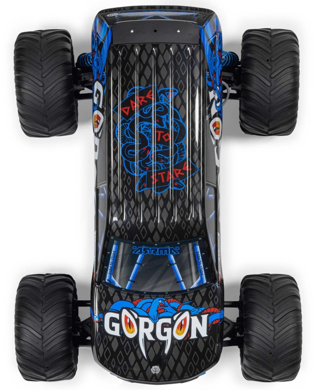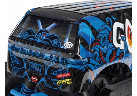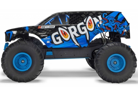 - Product Type: ARRMA GORGON C-ARA3230ST5 1/10 blue monster truck RTR, ARRMA brushed 2WD RC truck with MEGA 550 motor and SLT2 radio, ARRMA electric monster truck with Smart NiMH battery and USB-C charger, ARRMA blue RC truck with waterproof electronics and coilover shocks, ARRMA 1/10 monster truck with dBoots Chevron tires and IC3 connector