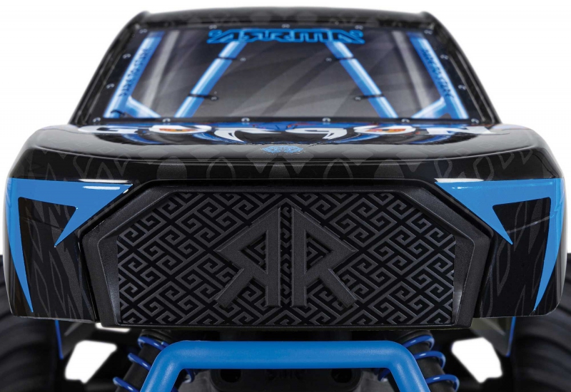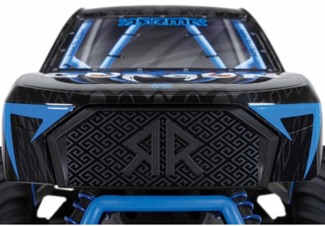 What visual upgrades make the ARRMA blue RC truck stand out?