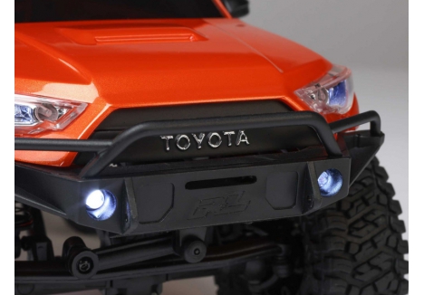 The Axial SCX24 Toyota 4Runner 1/24 4WD rock crawler RTR orange C-AXI-2035T1 combines scale realism, rugged construction, and user-friendly electronics in a complete ready-to-run package. From its officially licensed ABS hard body to its steel chassis rails and oil-filled shocks, every component is selected for durability and performance. The inclusion of Pro-Line Toyo Open Country R/T Trail tyres and Impulse Black Bead-Loc wheels adds grip and visual appeal, while the Spektrum SLT2 radio system ensures dependable control. With no assembly required and all necessary components included, this micro crawler is ready to perform straight out of the box, making it one of the best options for indoor and outdoor terrain exploration.