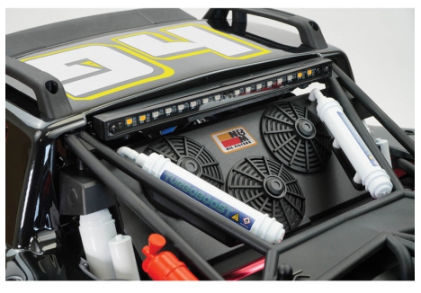 - Roll Cage: Moulded with scale accessories including fire extinguishers, shock reservoirs, and cooling fans