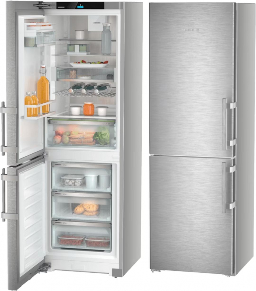 Rated energy efficiency class D under the latest EU guidelines, the Liebherr stainless steel freestanding fridge freezer consumes just 201 kWh/year. Its holiday mode reduces energy usage during extended absences, while automatic defrosting and humidity control further optimise performance. The appliance supports smart home integration via the optional SmartDeviceBox, enabling remote monitoring and control.