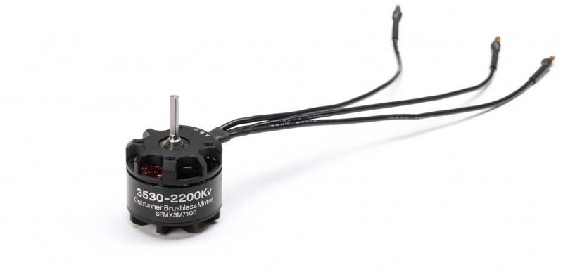 The Spektrum® Firma™ 3530 2200Kv Brushless Motor is a great choice for 1/10 rock crawler models running on 2-3S LiPo power. This motor features a 12-pole rotor design, CNC machined aluminum housing, insulated high purity copper windings, and high-quality alloy steel 3.175mm (1/8 in.) output shaft for durability and smooth rotation. The motor includes preinstalled 3.5mm gold-plated bullet connectors for easy installation.