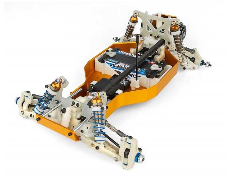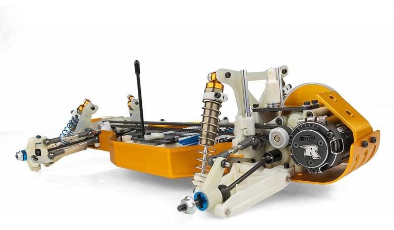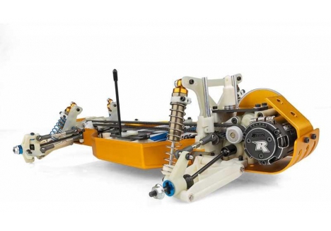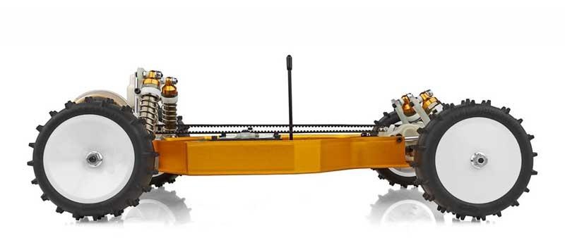 - 4WD aluminum monocoque tub chassis in goldanodized 6061T6 for maximum strength