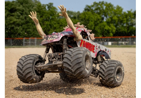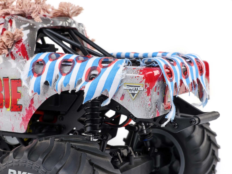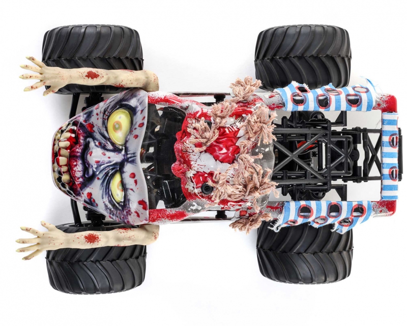 The Losi Mini LMT Zombie brushed RC monster truck C-LOS01026T4 is a tribute to the fan-favourite Monster Jam Zombie, recreated with precision and flair. From the injection moulded hood with UV-printed graphics to the hand-painted rubber arms and tattered cloth details, every element reflects the full-scale truck’s undead personality. The all-new moulded roll cage design provides structural support while enhancing the visual impact. This level of detail makes the Mini LMT Zombie not just a performer, but a collector’s piece for Monster Jam fans.