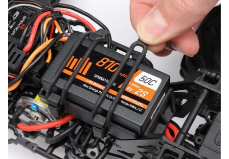 - Battery: Spektrum Smart G2 810mAh 2S LiPo – stores charge data and supports 10+ minute run times