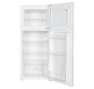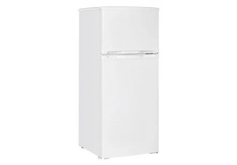 The Teknix TMH1148W compact top-mount fridge freezer provides 117L of net storage in a slim 48cm width design, perfect for kitchen corners or galley layouts. Featuring an 89L fridge compartment above a 28L freezer box, it delivers clear organisation with three glass shelves, a salad crisper, and a removable freezer shelf. The static cooling system uses manual defrost, while adjustable feet and a reversible door hinge ensure installation flexibility. Rated Class E for efficiency and quiet at 40dB, this unit is ideal for small homes, apartments, or utility rooms.