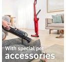 To maximise cleaning efficiency, Bosch includes a comprehensive accessory kit with the Bosch BBH3ZOOGB cordless vacuum cleaner for pet hair – red. This includes a flexible crevice nozzle for hard-to-reach areas, a 2-in-1 furniture and upholstery brush for soft surfaces, and an additional brush roll for floor nozzle customisation. These tools are designed to enhance the vacuum’s performance and make it suitable for a wide range of cleaning tasks around the home.
