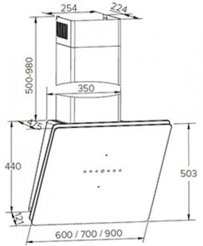 Installation: Wall-mounted chimney hood, ducted or recirculating