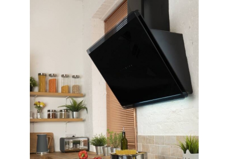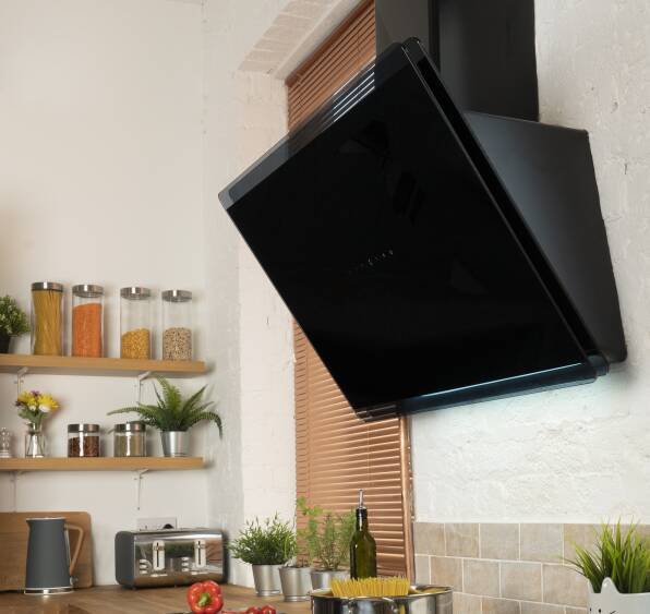 The aluminium grease filter is machine-washable for ease of maintenance. LED lights reduce heat build-up and require little servicing. The glass control area wipes clean effortlessly, and the black finish resists marks while maintaining a sleek look.
