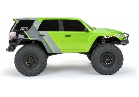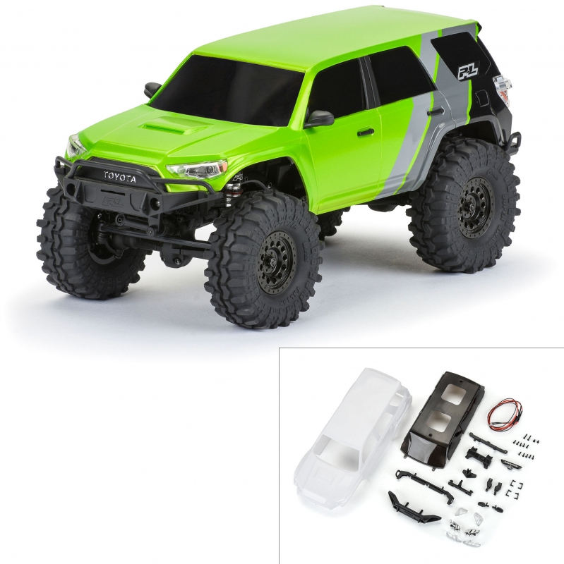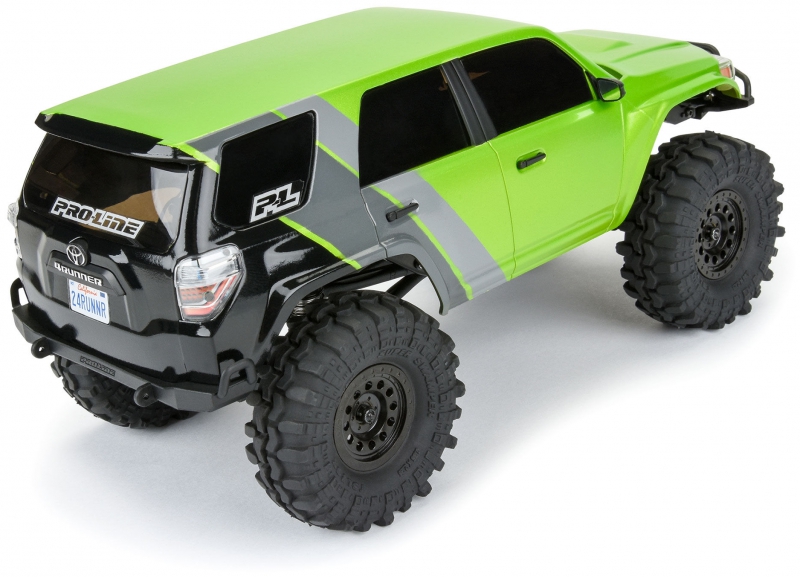 This is a 2023 Toyota 4Runner TRD Pro Hard Body for SCX24™. Pro-Line is proud to release a first ever hard body, unleashing another fully licensed body for Toyota fans: the 2023 Toyota 4Runner TRD Pro! All the scale detail from the full-size 5th Generation 4Runner SUV body style has been scaled down to fit on your SCX24™ 132mm wheelbase Crawler. The 4Runner body design was a collaboration between the Pro-Line and Axial design teams to bring a legendary hard body option to market.