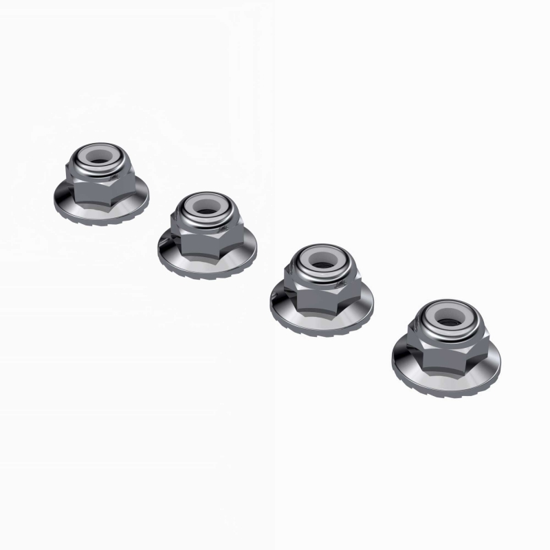 These Flanged Nyloc Nuts provide an ideal replacement part for your kit items. Precision manufactured from high-quality materials for a long service lifeNyloc insert to prevent looseningSerrated flange bites into wheel surface to provide a secure fitM4 machine thread7mm Hex sizeLarge 10.8mm diameter flange for extra security