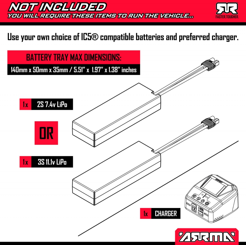 • Connector Type: IC5 – standardized for ARRMA Smart power systems
