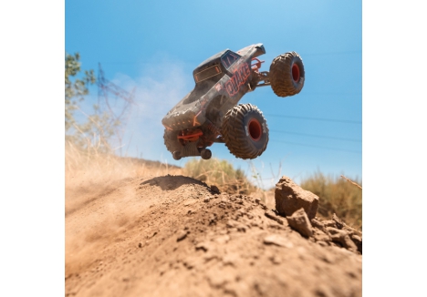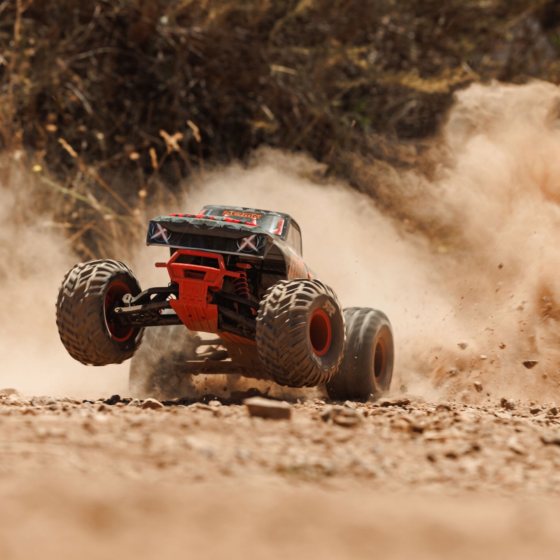 This beast is built to bash anywhere. Off-road. Parking lots. Dirt tracks. Open fields. Heck, we wouldn't blame you for sending it down your neighbor's mulch pile (just don't say we told you to). Its wide stance and long-arm suspension give it a planted feel that carves through corners and flies straight and true. Perfect for new drivers, but wild enough for seasoned senders.