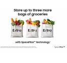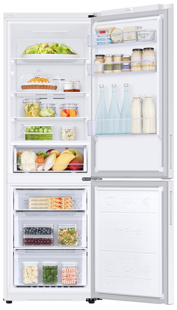 Storage flexibility is a key advantage of the Samsung RB33B610EWW/EU 344L 70/30 split fridge freezer with SpaceMax technology. The Big Door Bin is designed to hold bottles and cartons up to 4 pints, freeing up shelf space for other items. This wider and deeper bin allows users to stock up on drinks and dairy without compromising internal organisation. It’s a practical solution for families and entertainers alike, offering quick access to frequently used items while maintaining a tidy fridge interior.