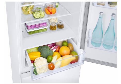 The Samsung frost free fridge freezer with big door bin and LED lighting incorporates Digital Inverter Technology to deliver efficient, long-lasting performance. By adjusting compressor speed based on cooling demand, the system reduces energy consumption and minimises wear. This not only lowers running costs but also supports eco-conscious living by reducing electronic waste. Built with high-quality components, the Samsung RB33B610EWW/EU SpaceMax fridge freezer is engineered for durability and environmental responsibility.