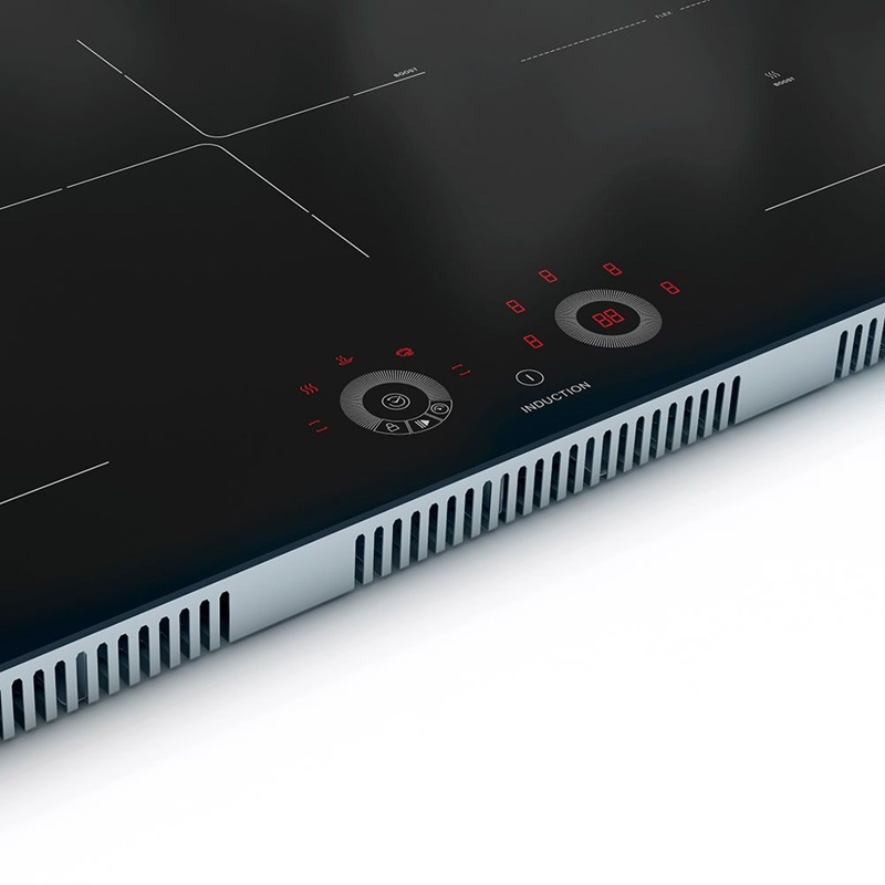 The Teknix Smart Wheel Touch hob with 10.8kW max power and hardwired install features a responsive control system that allows users to adjust heat levels with precision. The circular touch interface replaces traditional buttons with a smooth, intuitive dial, making it easy to switch between the 9 available power levels. Whether you're gently melting chocolate or flash-searing steak, the Smart Wheel Touch ensures accurate temperature control with minimal effort. This design also contributes to the hob’s minimalist aesthetic, keeping the surface clean and uncluttered.
