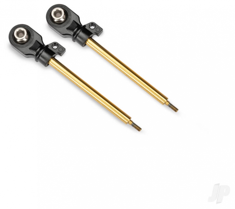 The titanium-nitride (TiN) coating on these 72mm GT-Maxx shock shafts makes them harder and smoother for better resistance to scratching, smoother performance, and longer seal life. Shafts come assembled with rod ends and steel hollow balls. Sold as a pair.