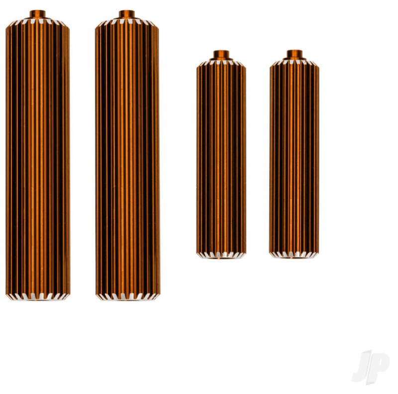 Add extra style to your Pro Scale Sand Car with genuine Traxxas aluminium accessories. Carefully machined from tough 6061-T6 aluminium and anodised in brilliant colours, these replica shock reservoirs set your ride apart from the pack. Includes two front and two rear reservoirs.