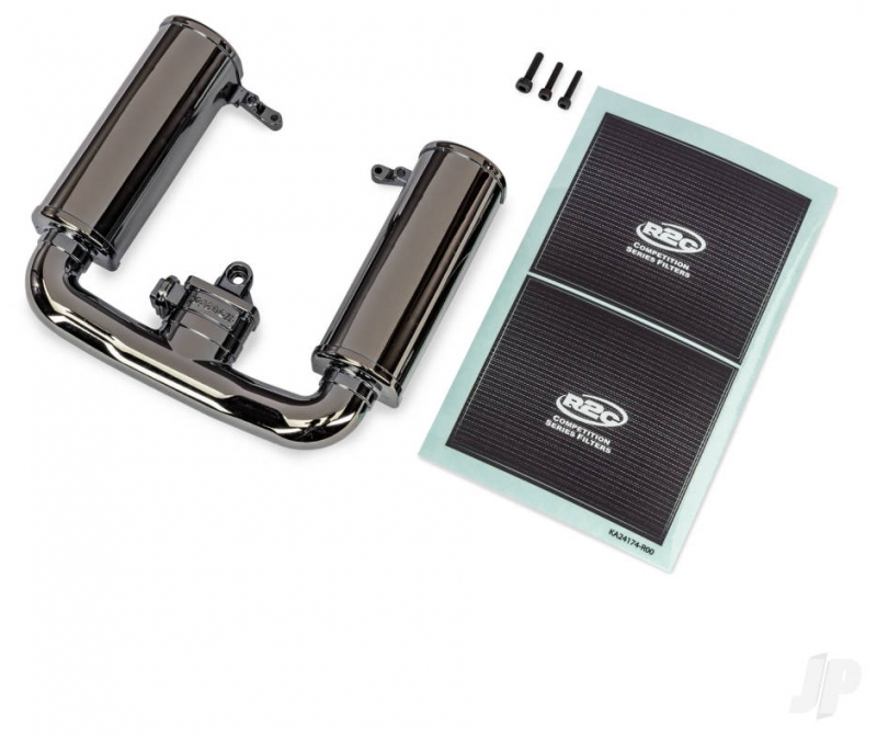 Customise your Pro Scale Sand Car's engine with this black chrome replica intake with air filters. Includes 2.5x12mm screws (2) and 3x12mm screw (1). Decals included.