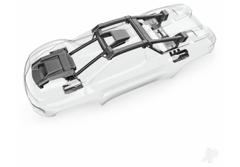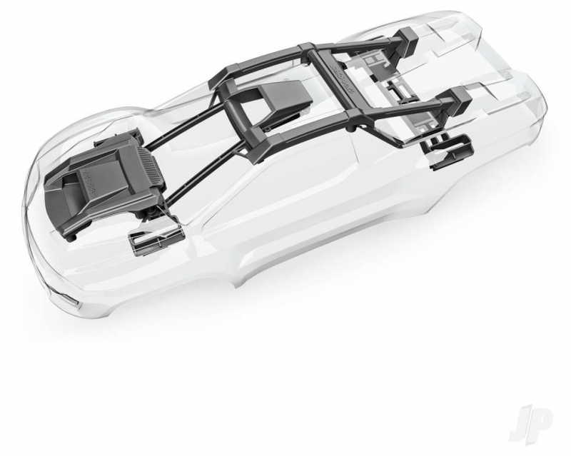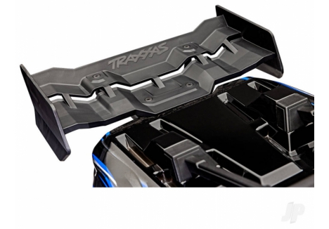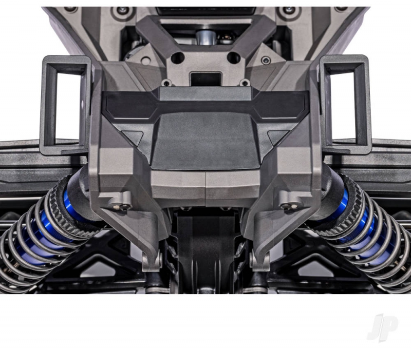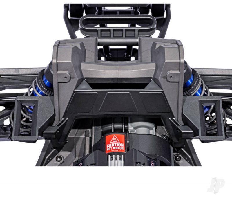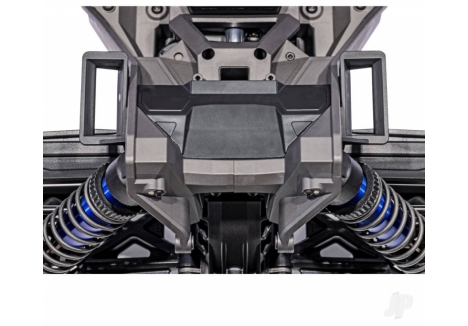 The Traxxas XRT race truck with Velineon 1275kV motor and clipless body – TRX78086-4-BLK features a patent-pending clipless mounting system that secures the body in seconds. Reinforced internal framing, molded cooling ducts, and protective top skids enhance durability and airflow. The rigid shell resists tear-through damage, while the rear wing and bumpers absorb impact forces. This system simplifies access and improves structural integrity during aggressive driving.