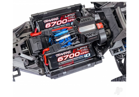 - 2 × 4-cell 6700 mAh LiPo batteries with Traxxas High-Current Connectors (recommended: 2890X)